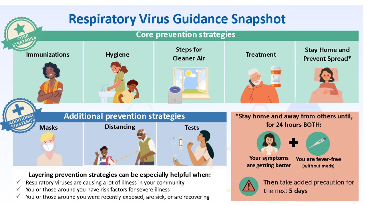 - Stay up-to-date with vaccines: flu and COVID vaccines are updated for current strains and recommended for everyone; RSV is a new vaccine for special groups (very young and over 60)